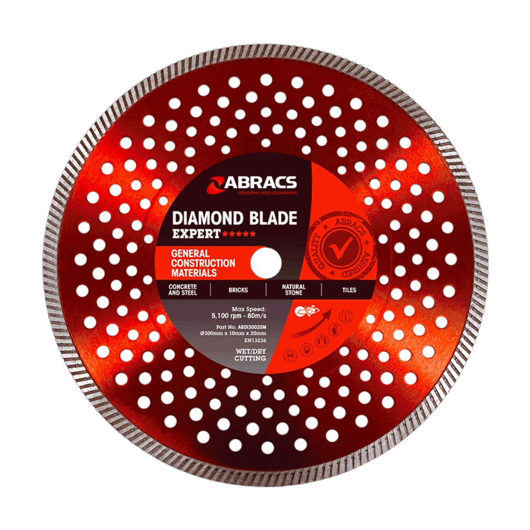 Expert-line General Construction Materials Diamond Blades are suitable for cutting virtually all construction materials including steel and reinforced concrete. The 10mm continuous segment eliminates the chance of segment loss and cooling hole technology reduces cutting temperature and increases user visibility for enhanced safety.