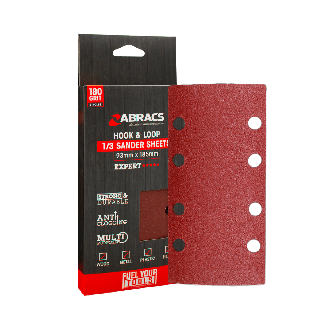 Abracs 1/3 Sander Sheets are manufactured with premium quality aluminium oxide grain and durable E-Weight paper backing for long life and high performance available in either Hook & Loop or Clamped fitting type.