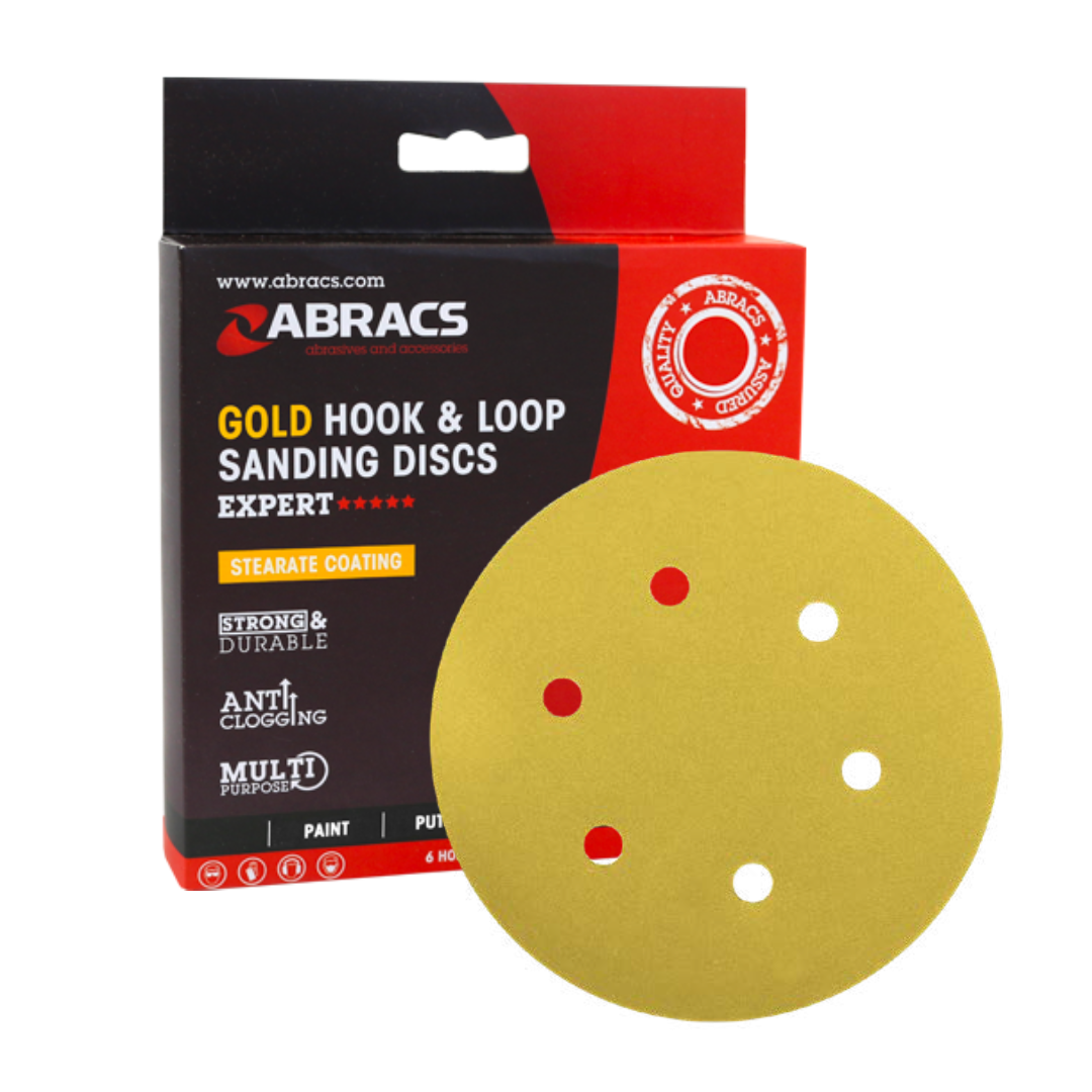 Abracs Hook & Loop GOLD Sanding Discs 150mm 6 Hole – 25 Pack
