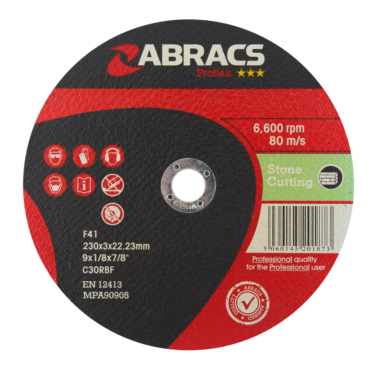 Abracs Cutting Discs are available for use on a variety of metal & stone applications in an extensive range of sizes. Our experience in manufacturing processes developed over nearly 3 decades, combined with the use of premium quality raw materials enables us to produce cutting discs with significant increases in product lifespan, performance and quality. All Abracs cutting discs are manufactured to European safety standards and marked with EN12413. Proflex discs offer professional quality performance and are a great value cutting disc, priced competitively with an exceptional cost per-cut ratio.