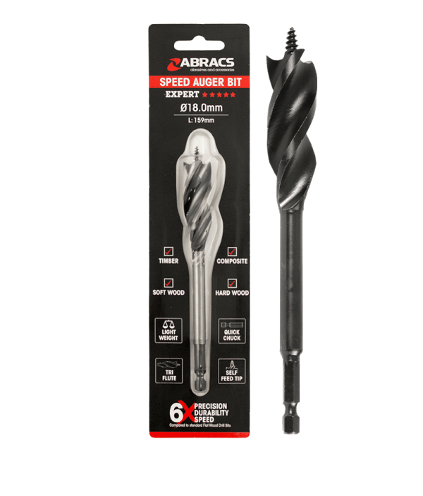 Abracs Speed Auger Drill Bits are 6x Faster drilling speed compared to a traditional Flat/