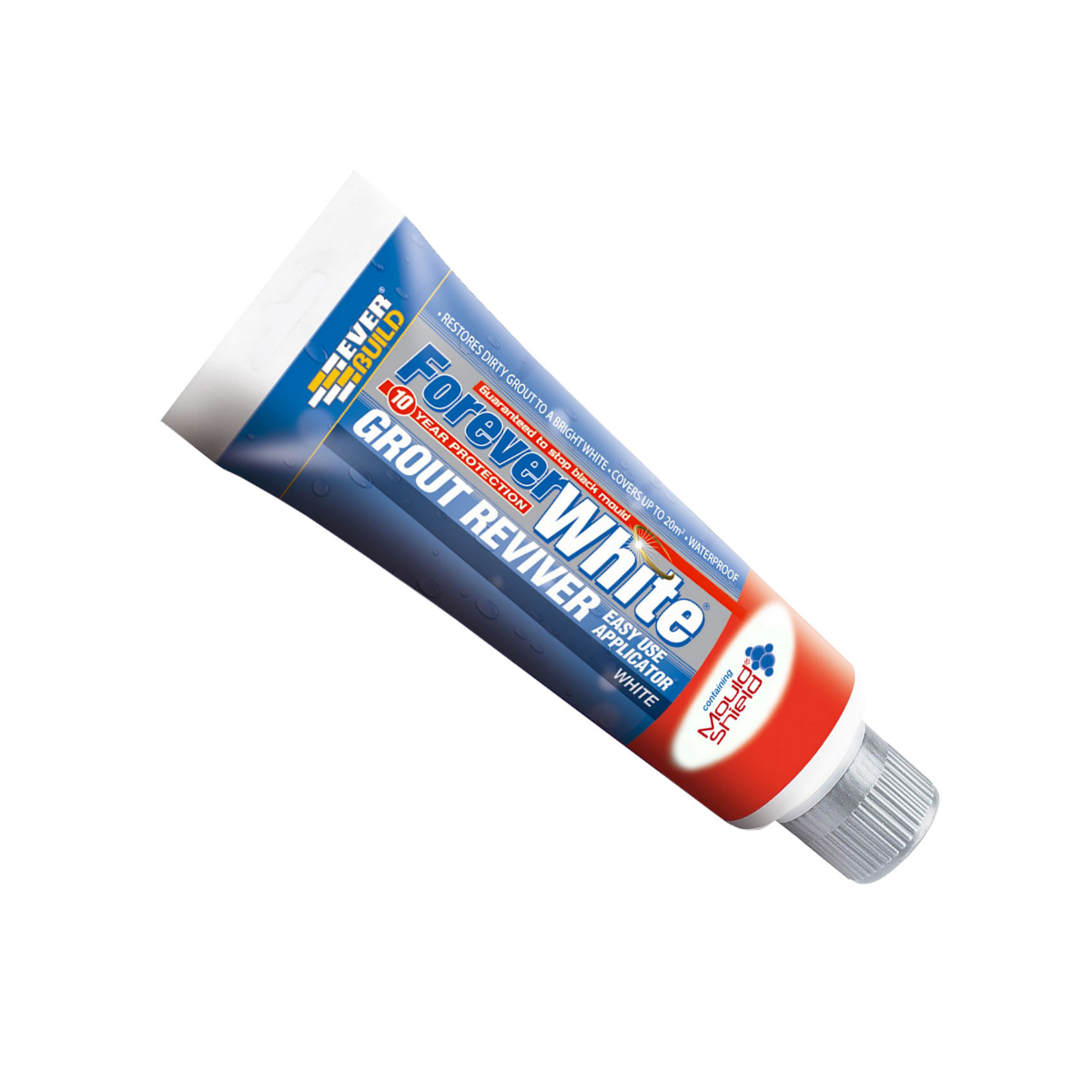 EVERBUILD FOREVER WHITE® Grout Reviver is the easy way to revive and restore discoloured and dirty grout to a bright white finish. With Mould Shield® the leading anti-bacterial solution integrated into the manufacturing process, EVERBUILD FOREVER WHITE® Grout Reviver is proven to stop mould, mildew and bacterial growth. Mould Shield®, in conjunction with Everbuild deliver high quality antimicrobial products, manufactured in the UK and rigorously tested in accredited microbiological laboratories to show no mould growth after 10 years simulated ageing and actively prevent the growth of bacteria, mildew and black mould that are commonly found in areas of high humidity. Copies of test data are available upon request. Forever White Grout Reviver dries to an extra brilliant white finish.