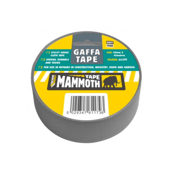 Everbuild Mammoth Easy Tear Gaffa Tape is a utility grade cloth tape for use in repairs in construction, industry and around the home and garden. This easy tear gaffa tape will stick to most common building surfaces including polythene. Mammoth Easy Tear Gaffa Tape is waterproof, strong and durable making it ideal for both outdoor and indoor use.