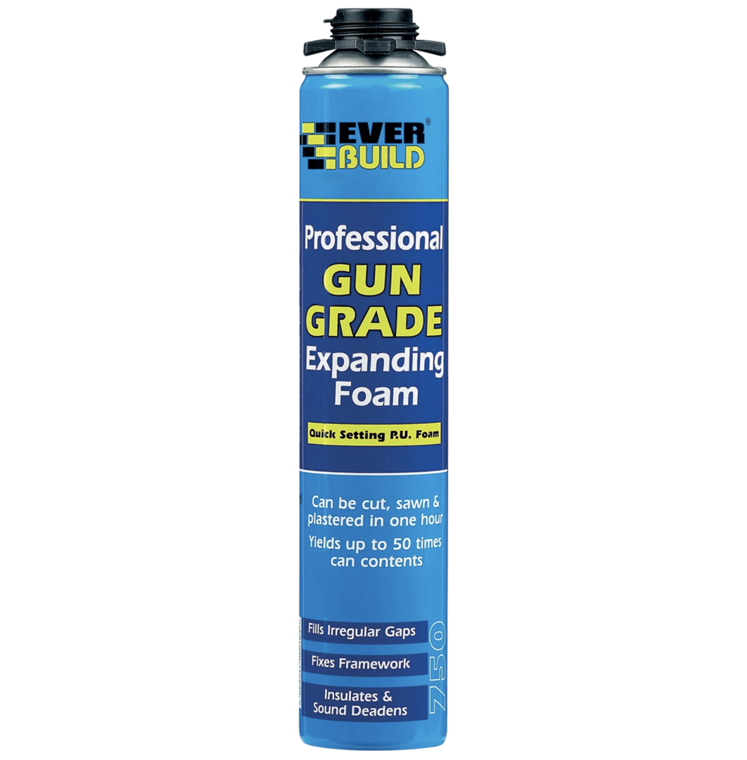 EVERBUILD® Gun Grade Expanding Foam is a quick setting polyurethane-based foam which expands greatly on application and yields up to 50 times the original can contents. Can be cut, sawn, plastered and sealed over after approximately one hour. Fills irregular gaps, fixes framework, insulates and sound deadens. Designed for professional use in conjunction with Gun Foam Applicators.