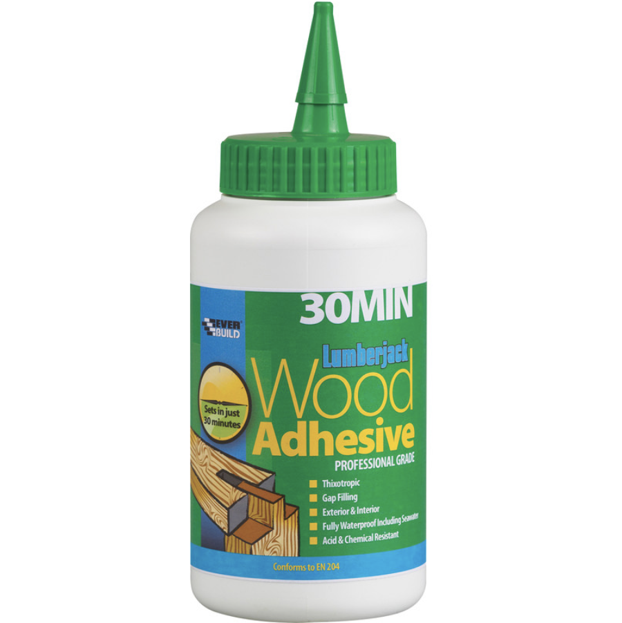 EVERBUILD® Lumberjack® 30 Min PU Wood Adhesive is a professional quality one part moisture curing wood adhesive, which sets hard in 30 minutes. As well as bonding all common wood types (hard, soft, exotic, painted) EVERBUILD® Lumberjack® 30 Min PU Wood Adhesive will also bond Formica, polystyrene, PU foam metal and glass wool and various plastics (including PVC) to porous surfaces. Also adheres to stone, concrete, brick and masonry.