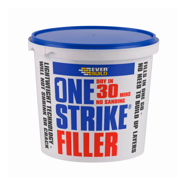EVERBUILD® ONE STRIKE FILLER® is a revolutionary ready-mixed lightweight filler for the preparation of numerous surfaces prior to painting or wallpapering. Based on high strength lightweight polymeric fillers, the product outperforms conventional fillers in most applications. Designed for professional and D.I.Y use. EVERBUILD® ONE STRIKE FILLER® finishes smooth, requiring little or no sanding and is ready to paint or wallpaper in just 30 minutes.