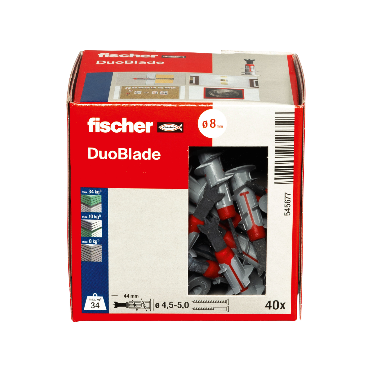 - The self-drilling fischer DuoBlade allows fast and easy installation in gypsum plasterboard and gypsum fibreboard.