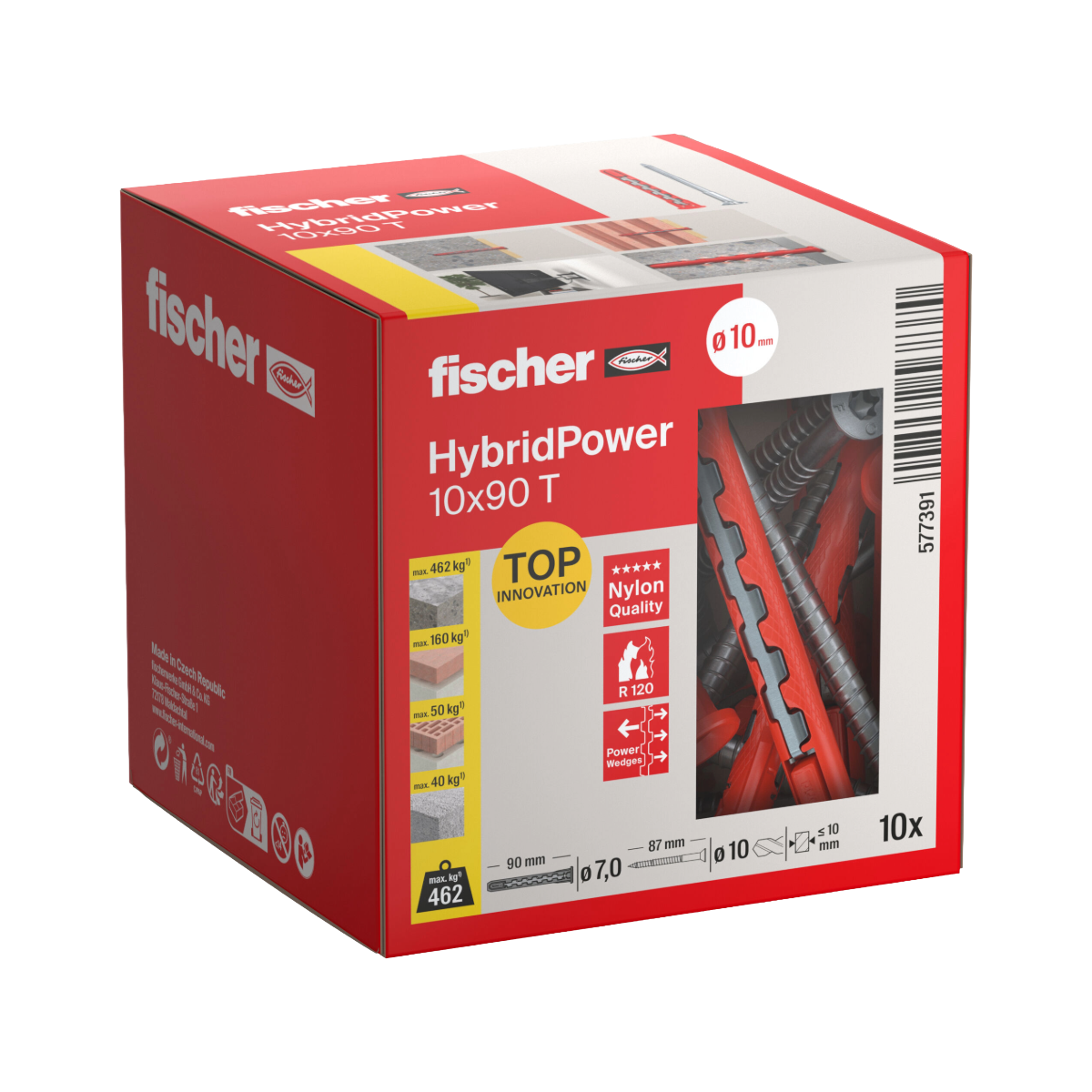 The fischer HybridPower combines the advantages of a classic plastic plug with the security of a steel anchor. Thanks to the combination of the two materials, the HybridPower is set like a classic plug and can be used in all building materials. At the same time, it offers high load-bearing capacities and secure anchoring, even in the event of fire. The range is suitable for metal and timber attachments up to 10 mm. The plug can be used for pre-positioned and push-through installation.
