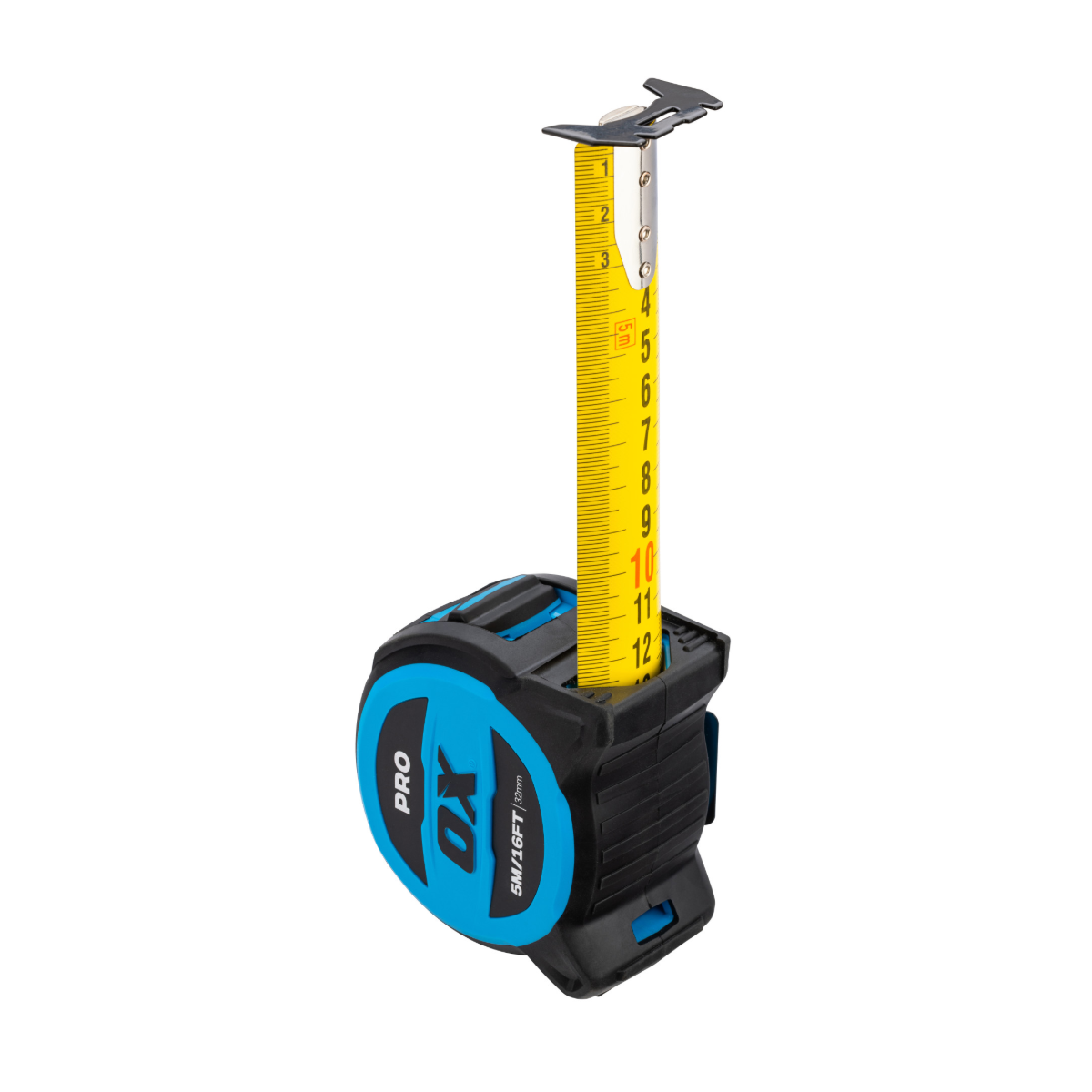 OX Pro 5m/16ft Tuff Blade Tape Measure – Magnetic Dual Hook & 32mm Wide Blade