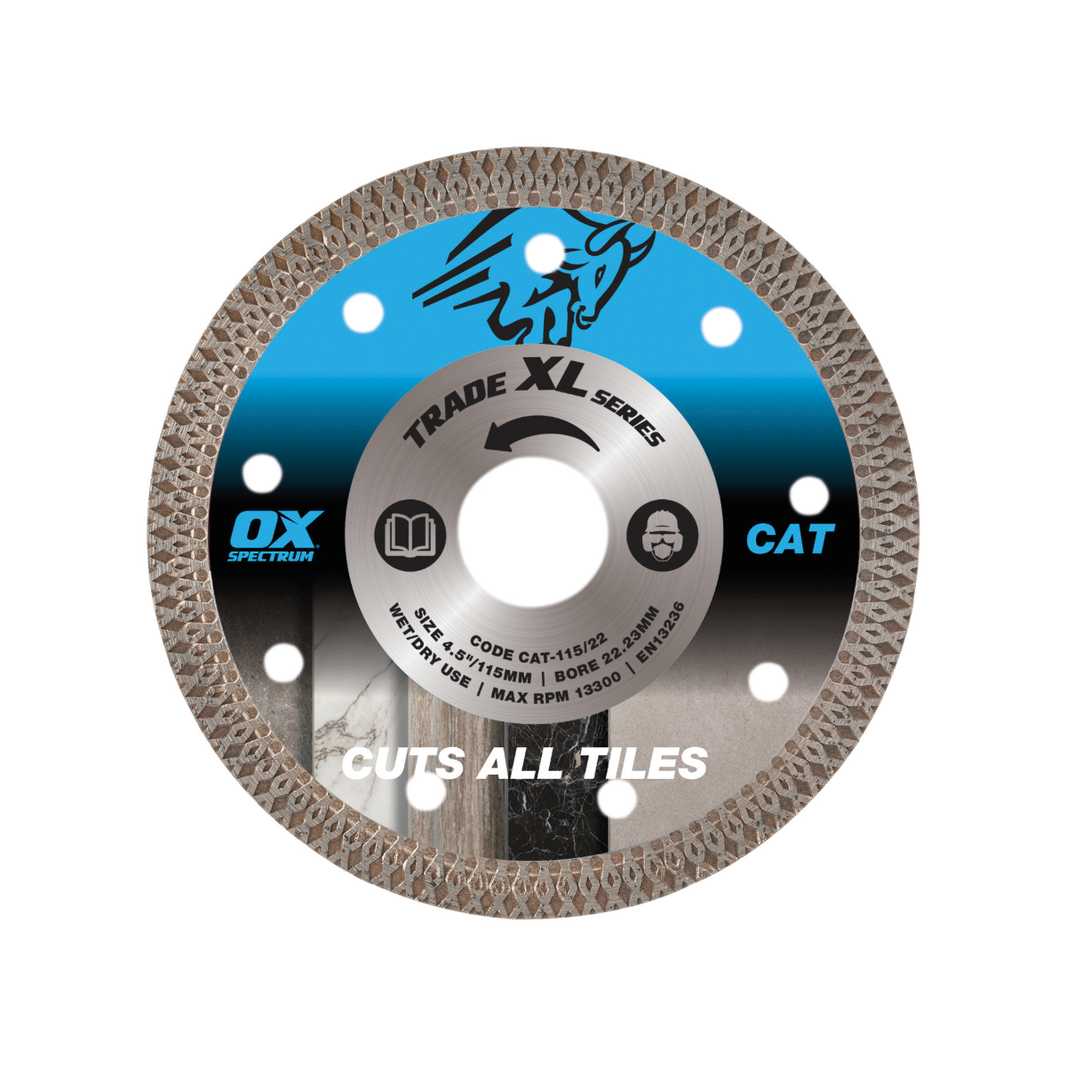 OX Trade XL Cuts All Tiles Diamond Blade – 115/22.23mm. This versatile blade ensures precise, chip-free cuts for ceramic and medium hard natural stone tiles. Engineered for both wet and dry cutting, it offers exceptional longevity, making it the go-to choice for professional tile cutting projects.