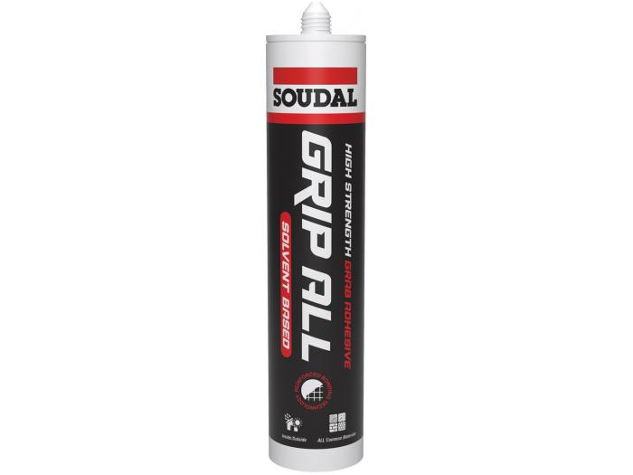 SOLVENT BASED, ultra-strong gap filling grab adhesive with Soudal’s unique Reinforced Bonding Technology. High initial grab – 125kg/m2. Very high final bond strength. Compatible with most building materials, porous and non-porous. The high performance adhesive replaces the need for mechanical fixings (screws and nails). Moisture resistant.