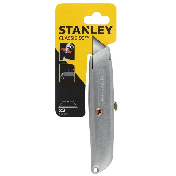 The Stanley 99E Original Retractable Blade Knife is made from grey painted die-cast metal body, which is ergonomically shaped for a good, comfortable grip. The blade extension can be controlled by the blade shifter, and 5 blade position allows a wider usage for a variety of cutting applications.
