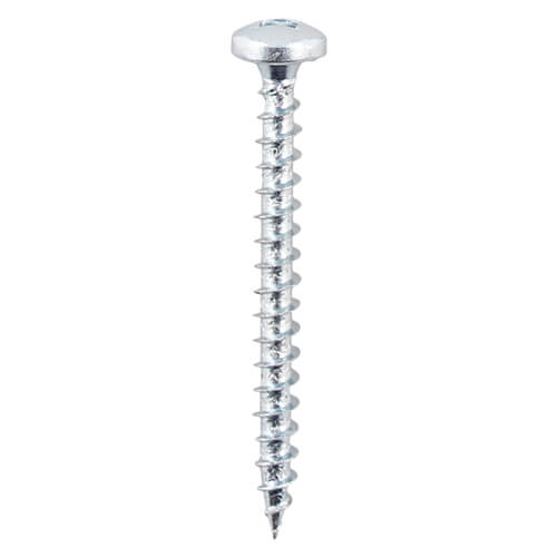 A single thread woodscrew mainly used in various types of timber and man-made boards or into masonry with the use of a plastic plug. • Pan head with a square recess to improve clamping • Wax lubricated to enhance screw insertion time, extra driving torque and resistance to corrosion • 40° deep single thread to provide a secure fixing with high pull-out resistance • 25° sharp point and single lead for a fast start and improved thread acceptance • All sizes up to and including 75mm are fully threaded and lengths 80mm and above all have 70mm thread length